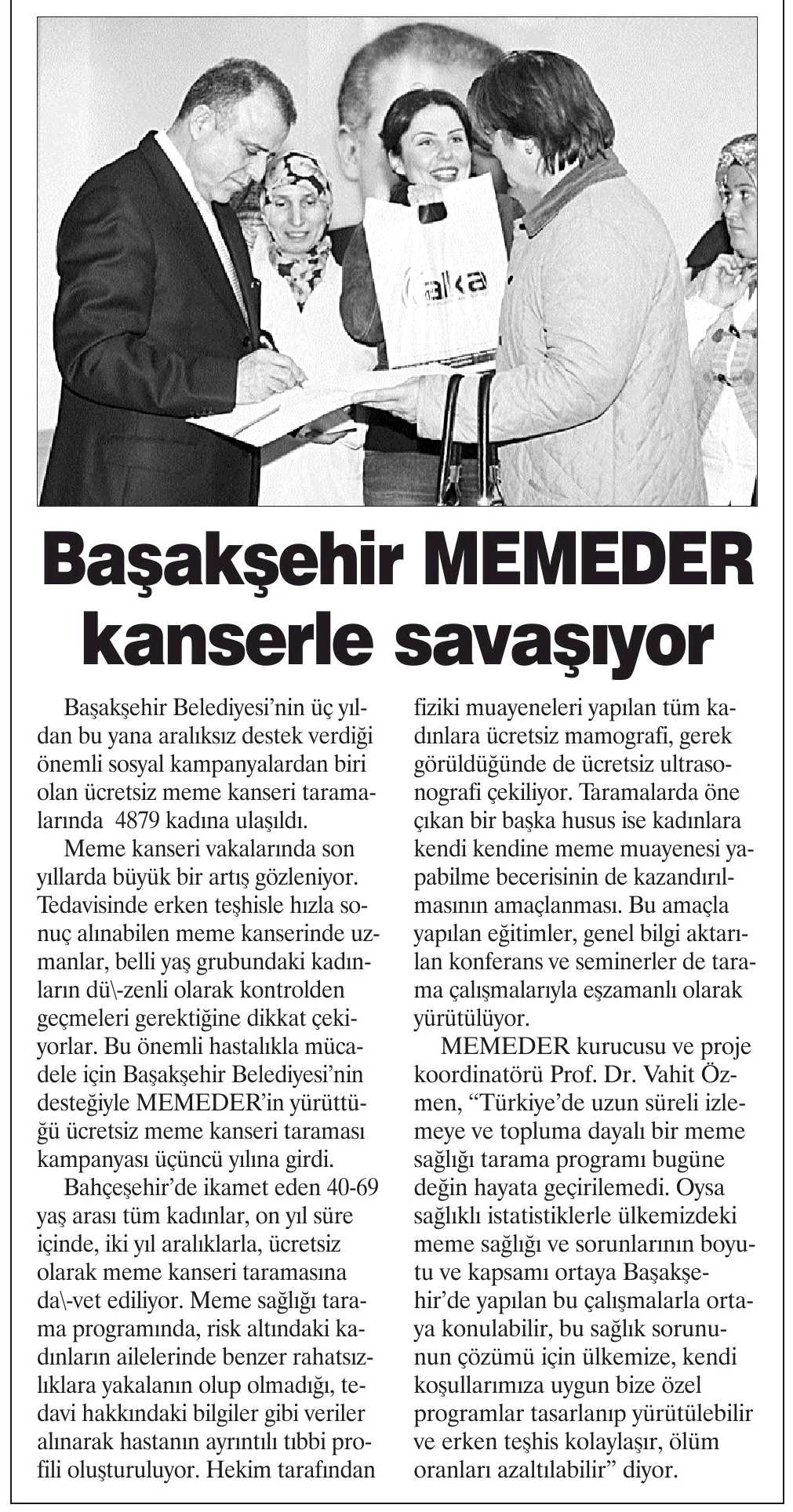 Başakşehir Memeder Kanserle Savaşıyor Büyükçekmece Gazetesi 17 Kasım 2011 Zaman 18 Kasım 2011 Bizim Anadolu 21 Kasım 2011 Dokuz Sütun 23 Kasım 2011